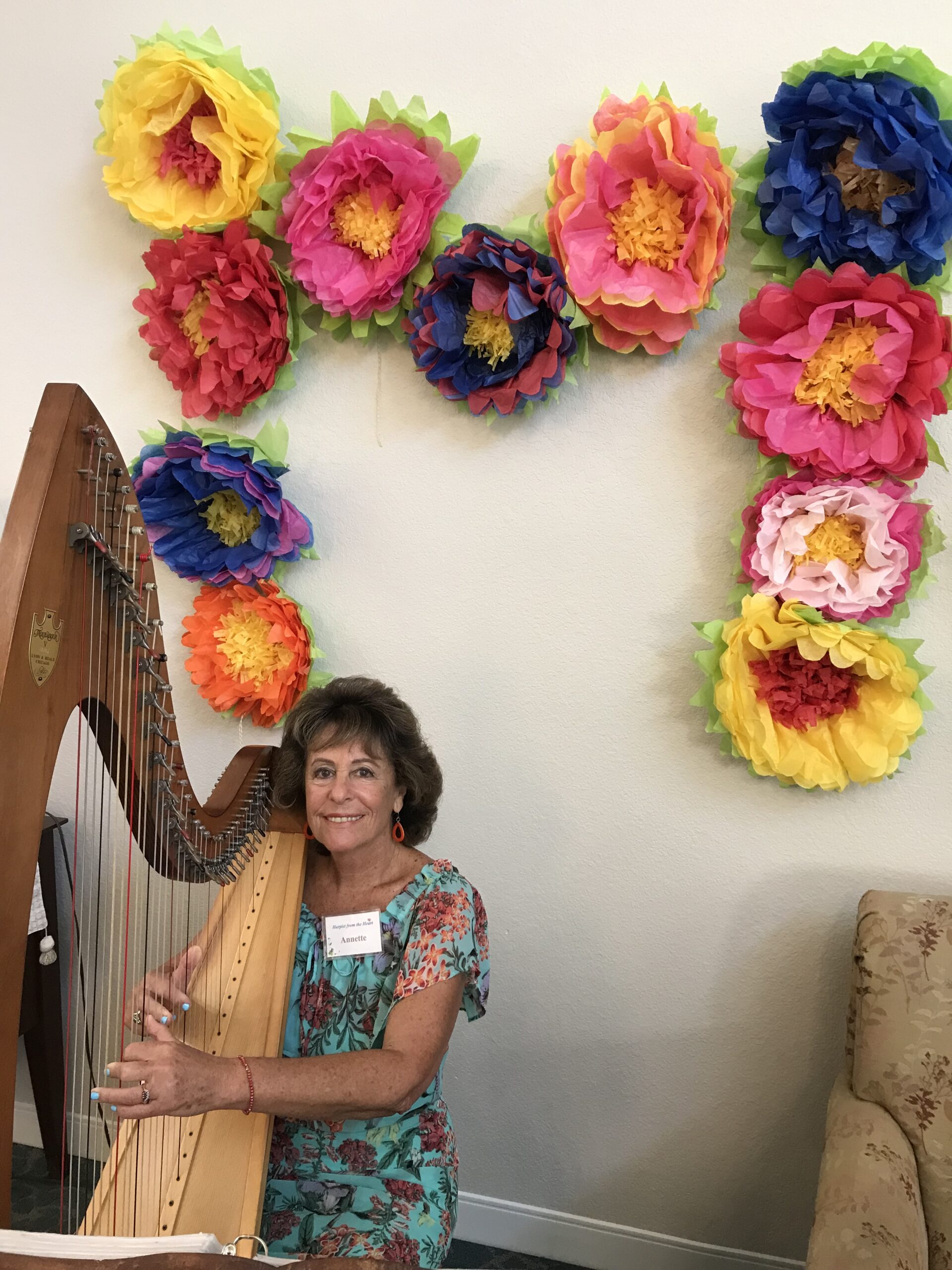 Whether your senior living community wants beautiful harp music for a themed event or weekly or monthly gathering time, Annette plays from a large musical repertoire that includes classical music, traditional songs, hymns, contemporary songs, and holiday music. She can customize the song list for each visit. In this way, she continuously creates unique experiences for residents. Beautiful harp music is the perfect way to entertain residents at monthly events and holiday gatherings. The harp also provides beautiful background music for lunches, brunches, and dinners.
